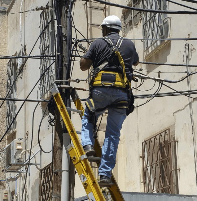 Fixing the wires on a ceiling light fixure.